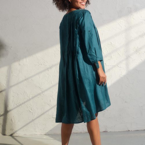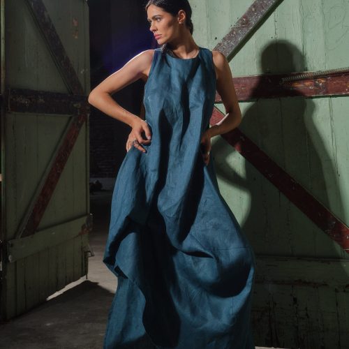 Petrol Blue Asymmetrical Linen Dress Avant Garde Clothing