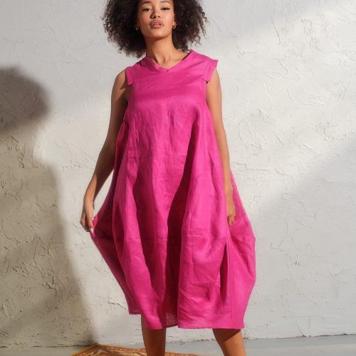 Summer Linen Midi Dress In Cyclamen Asymmetrical Bubble