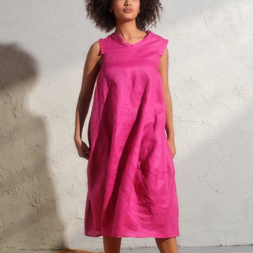 Summer Linen Midi Dress In Cyclamen Long Boho