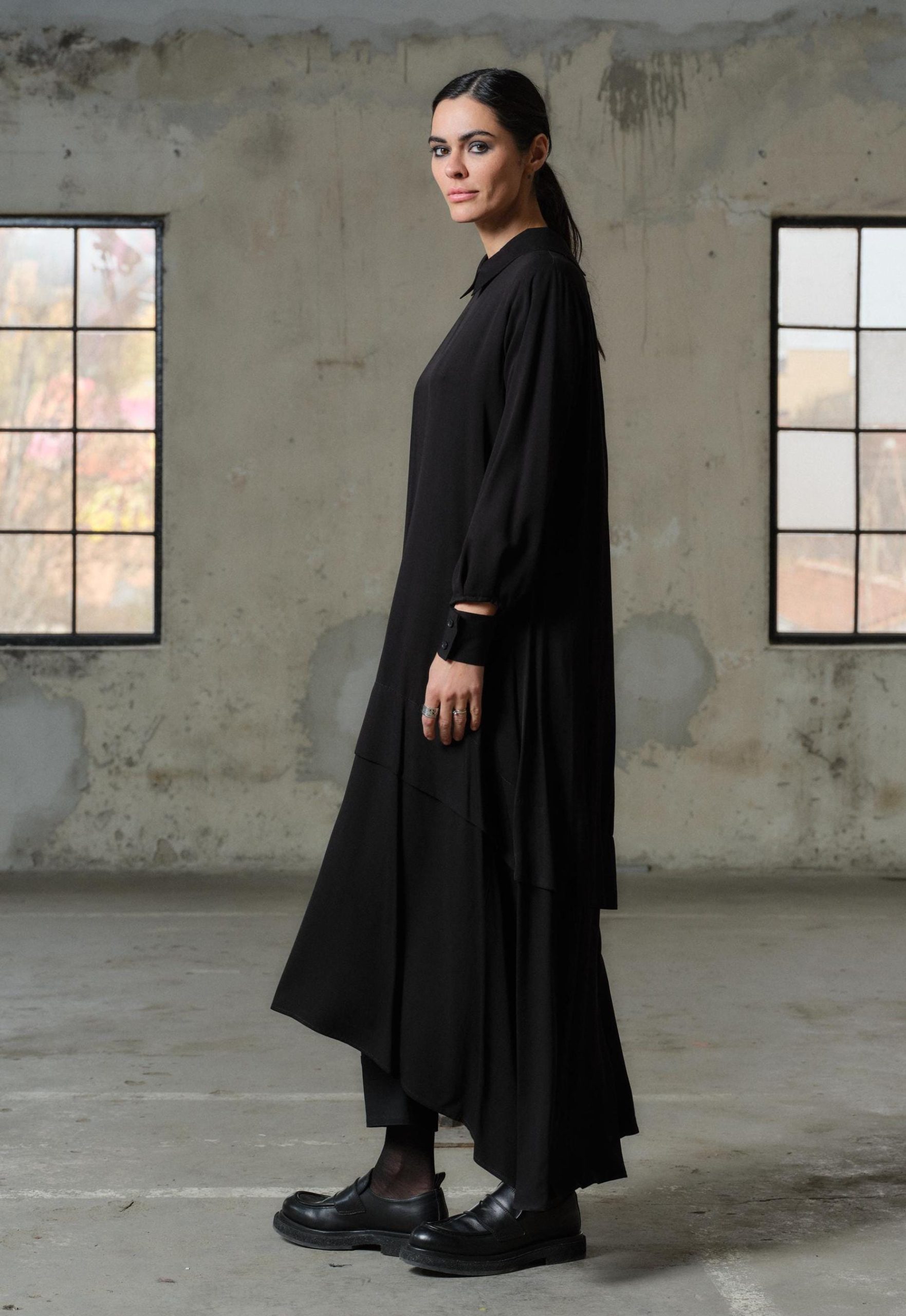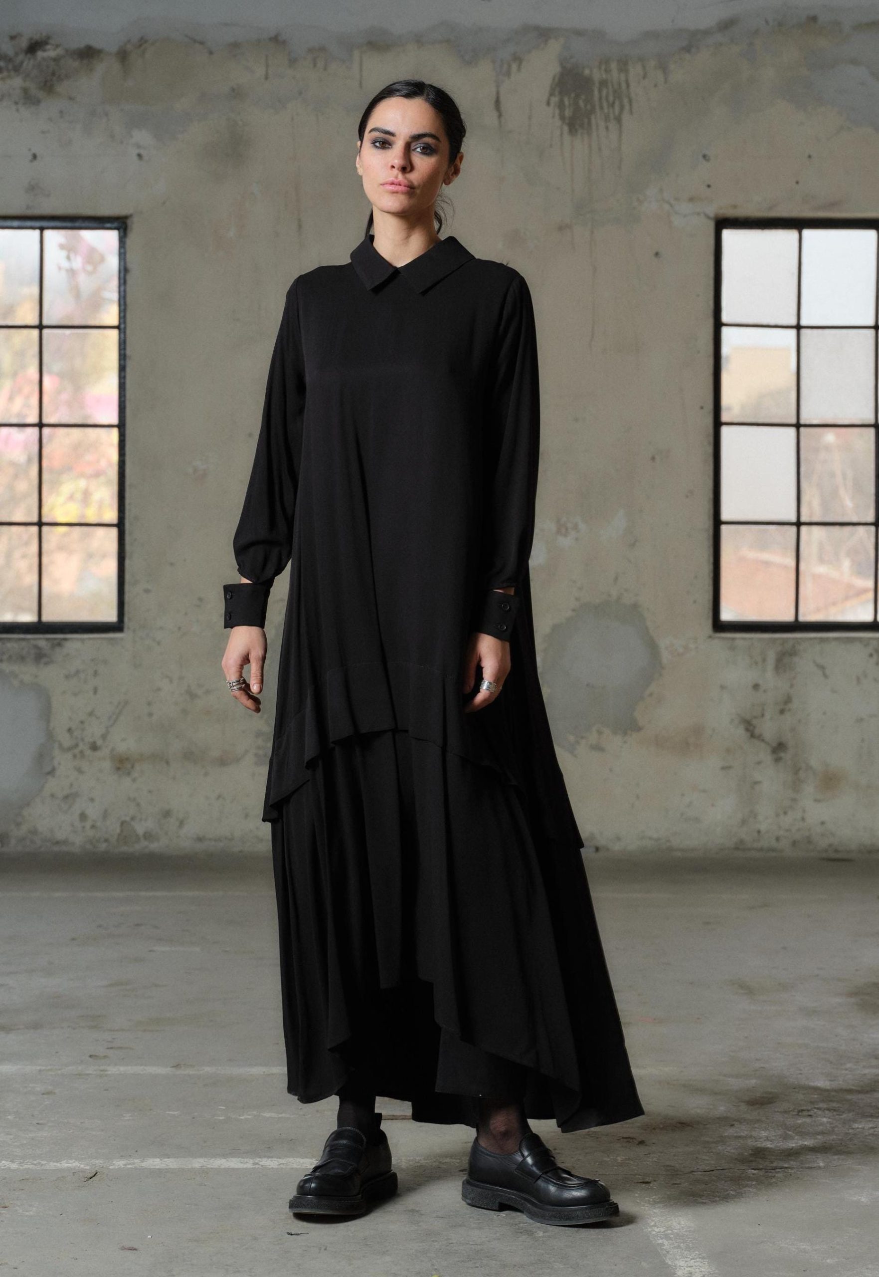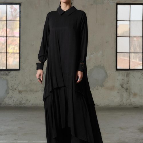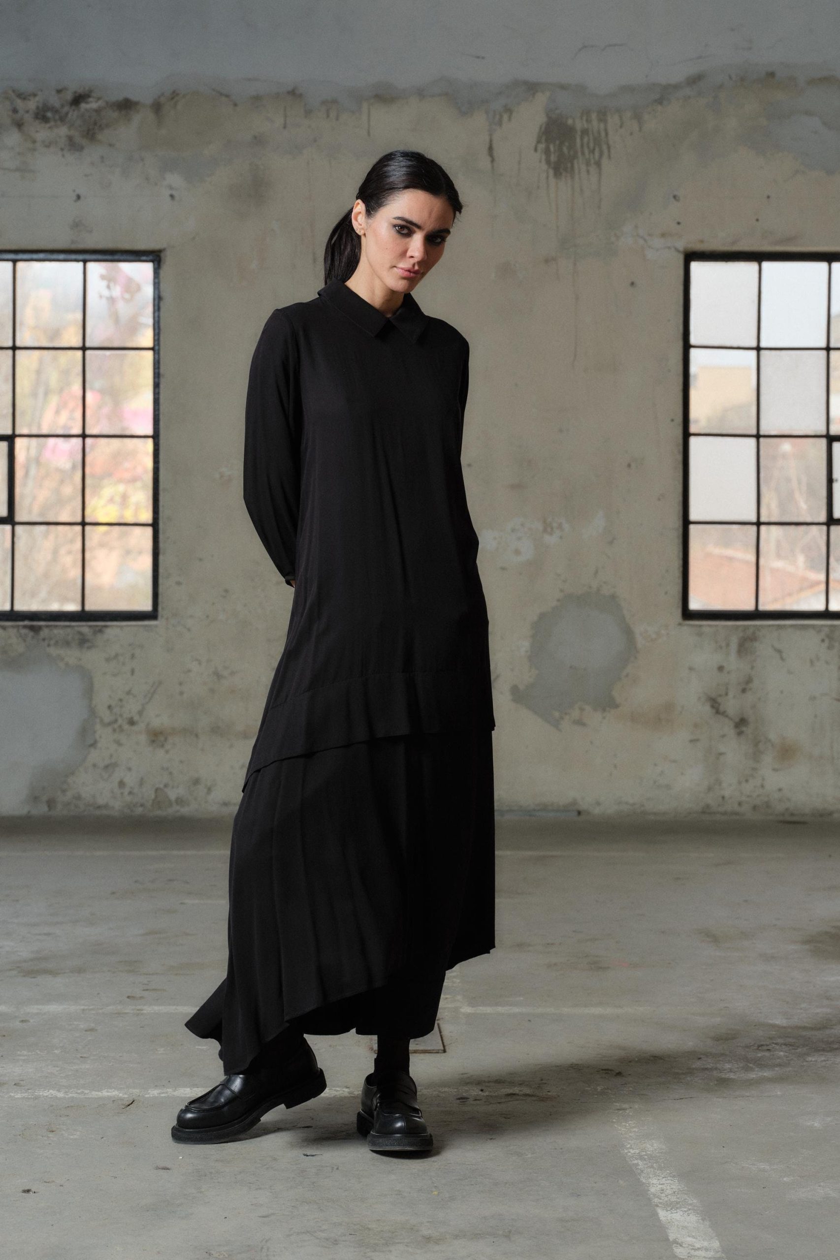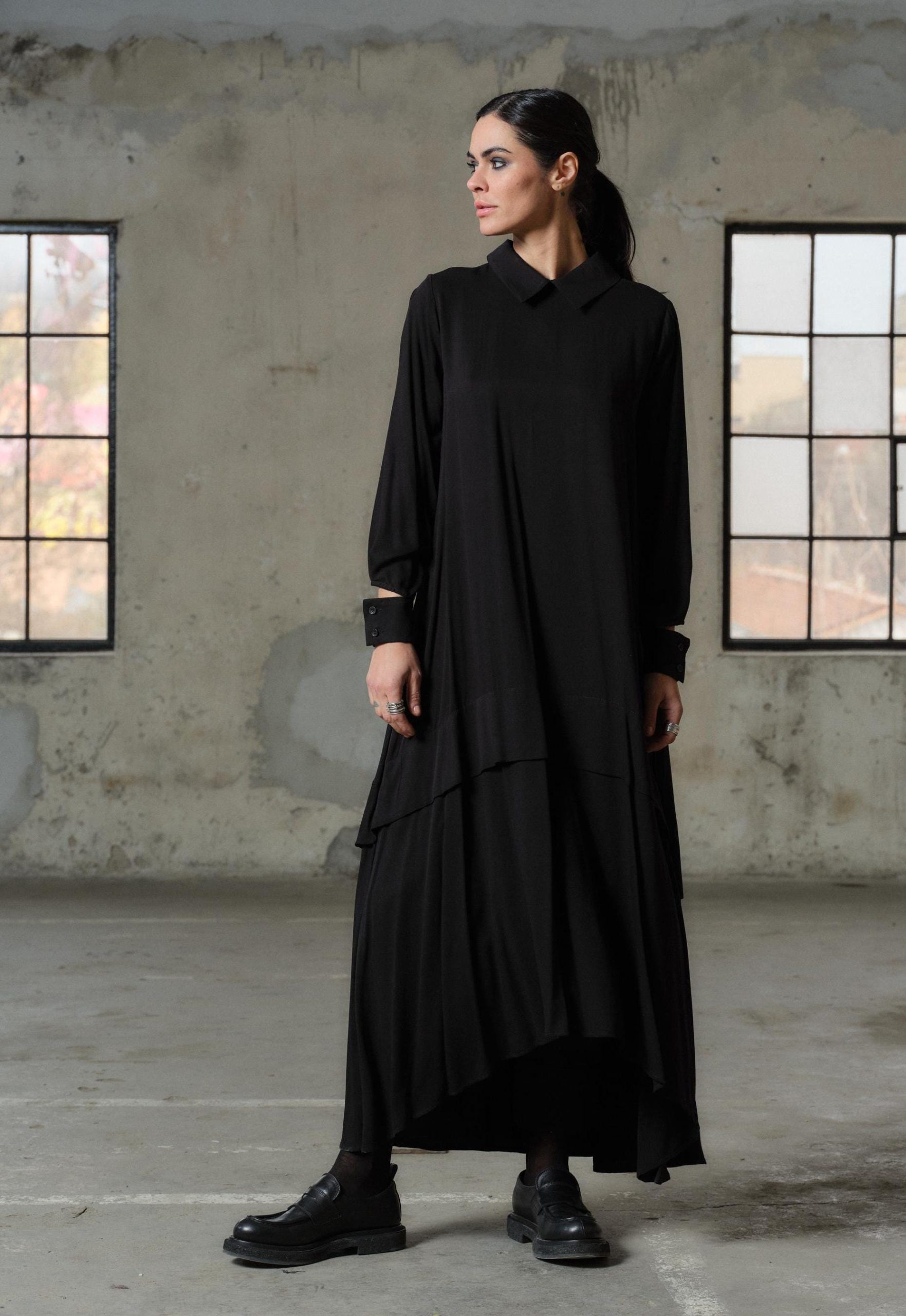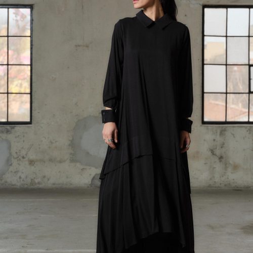 Black Viscose Maxi Dress Avant Garde Asymmetrical Shirt