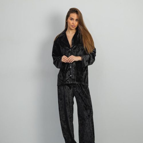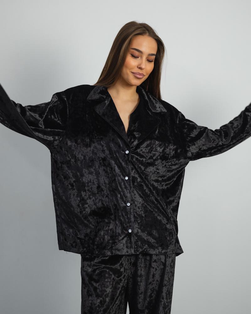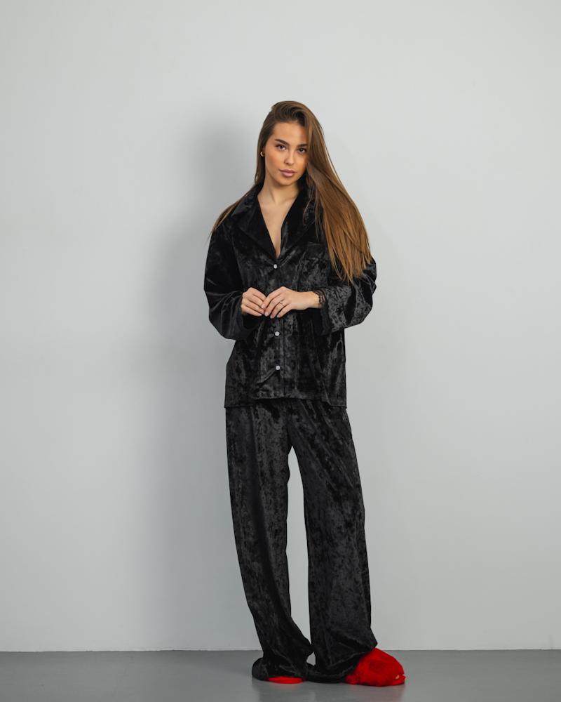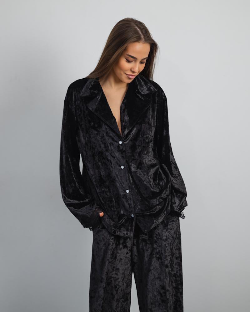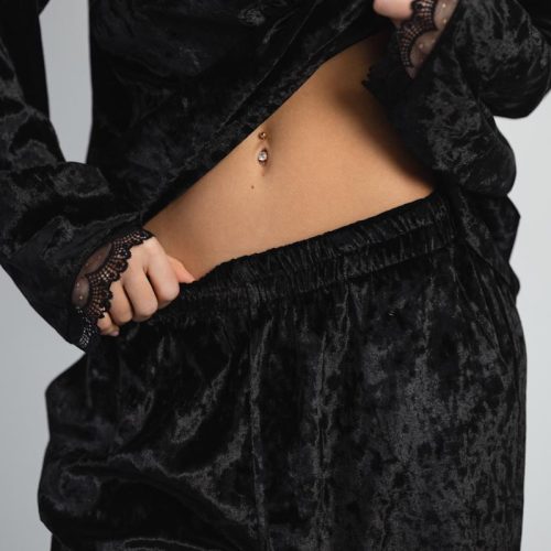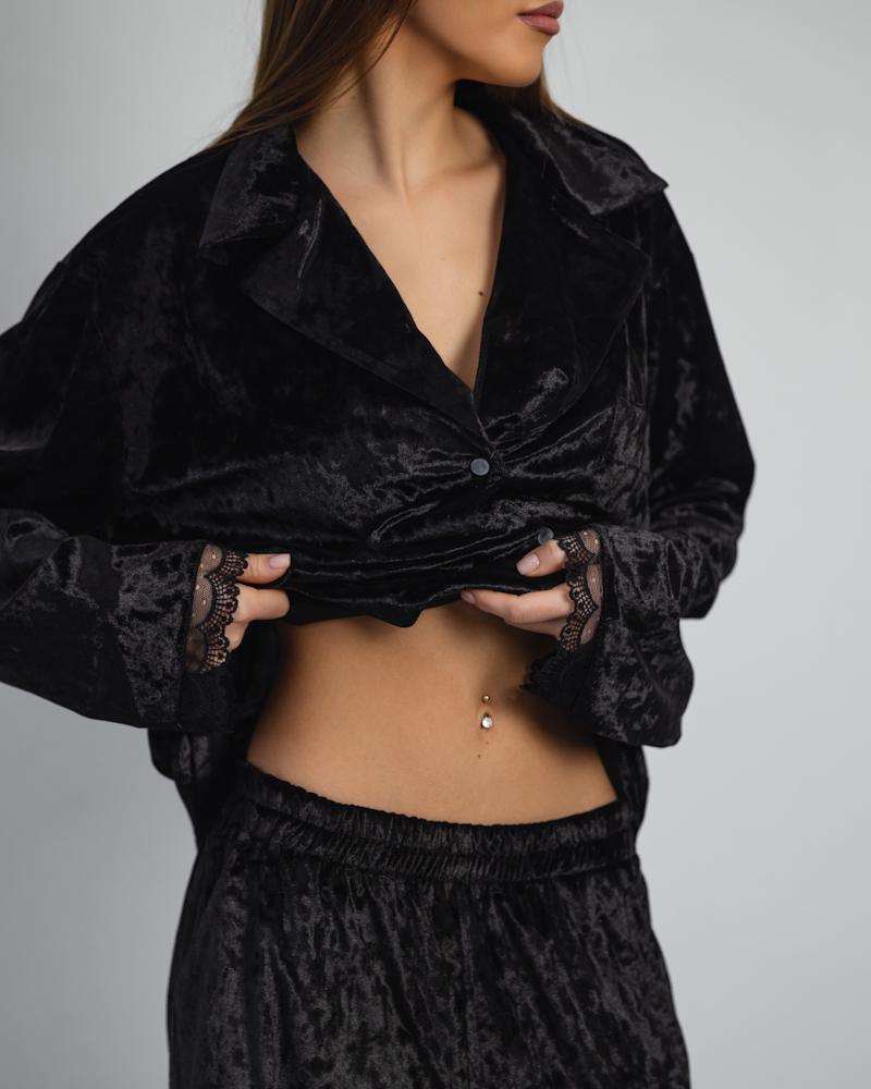 Pajamas Marble Velor + Lace Black